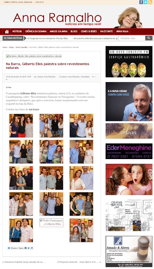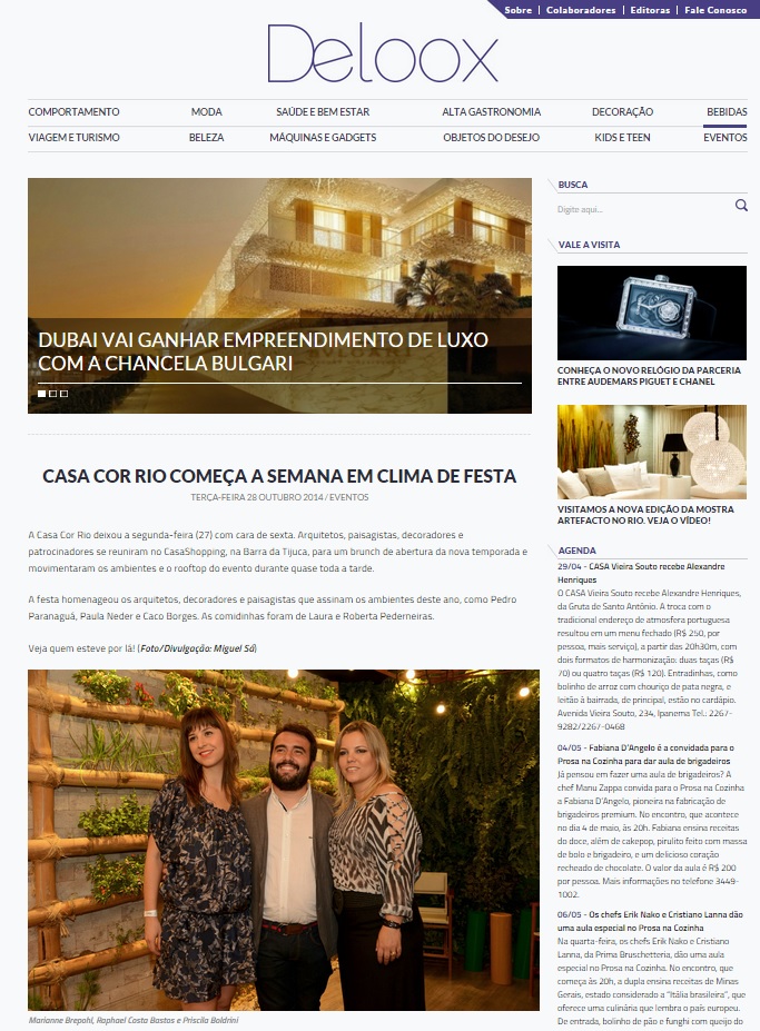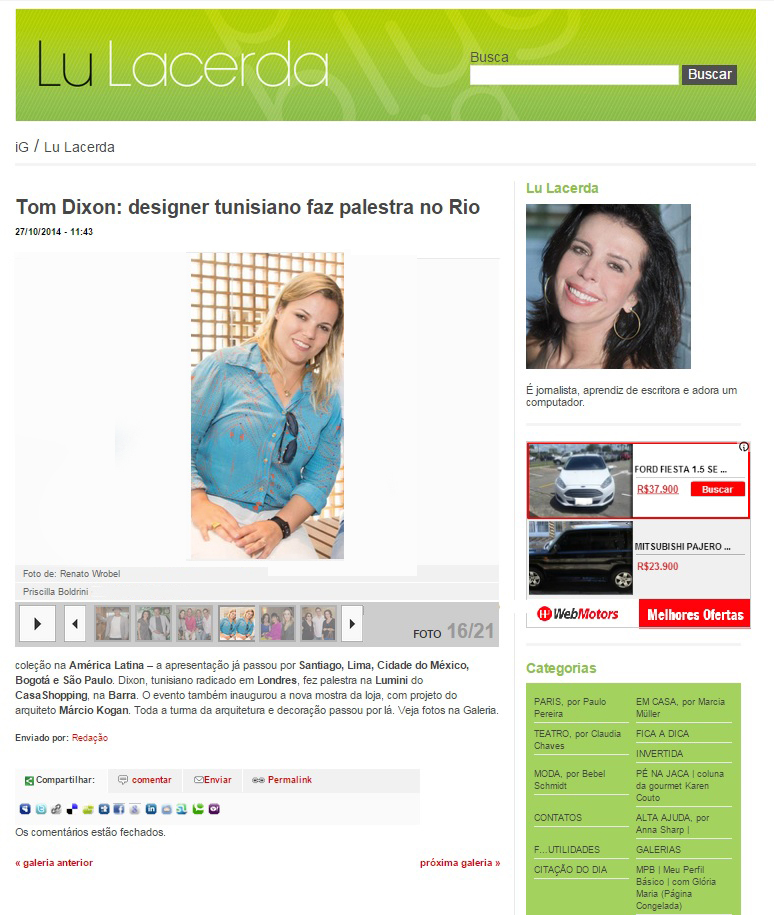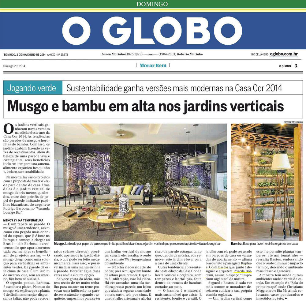 Matéria na coluna Morar Bem (Jornal O Globo) – CasaCor 2014 – 28/09/2014